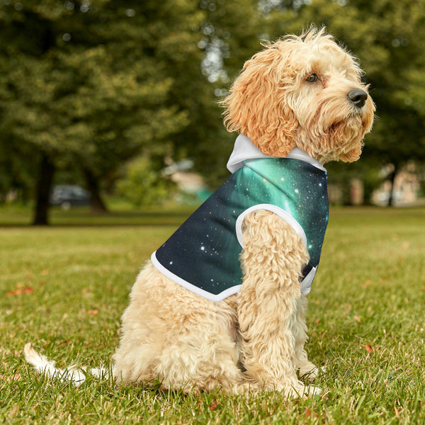 Stay stylish and keep your furry friend cozy with our Galaxy Print Dog Hoody. Designed with your pup's comfort in mind, this hoody features a soft, plush fabric and a bold galaxy print that will turn heads. Perfect for chilly walks or lounging at home, this hoody is sure to be a hit with pet parents and pups alike. Upgrade your dog's wardrobe today with the must-have Galaxy Print Dog Hoody.